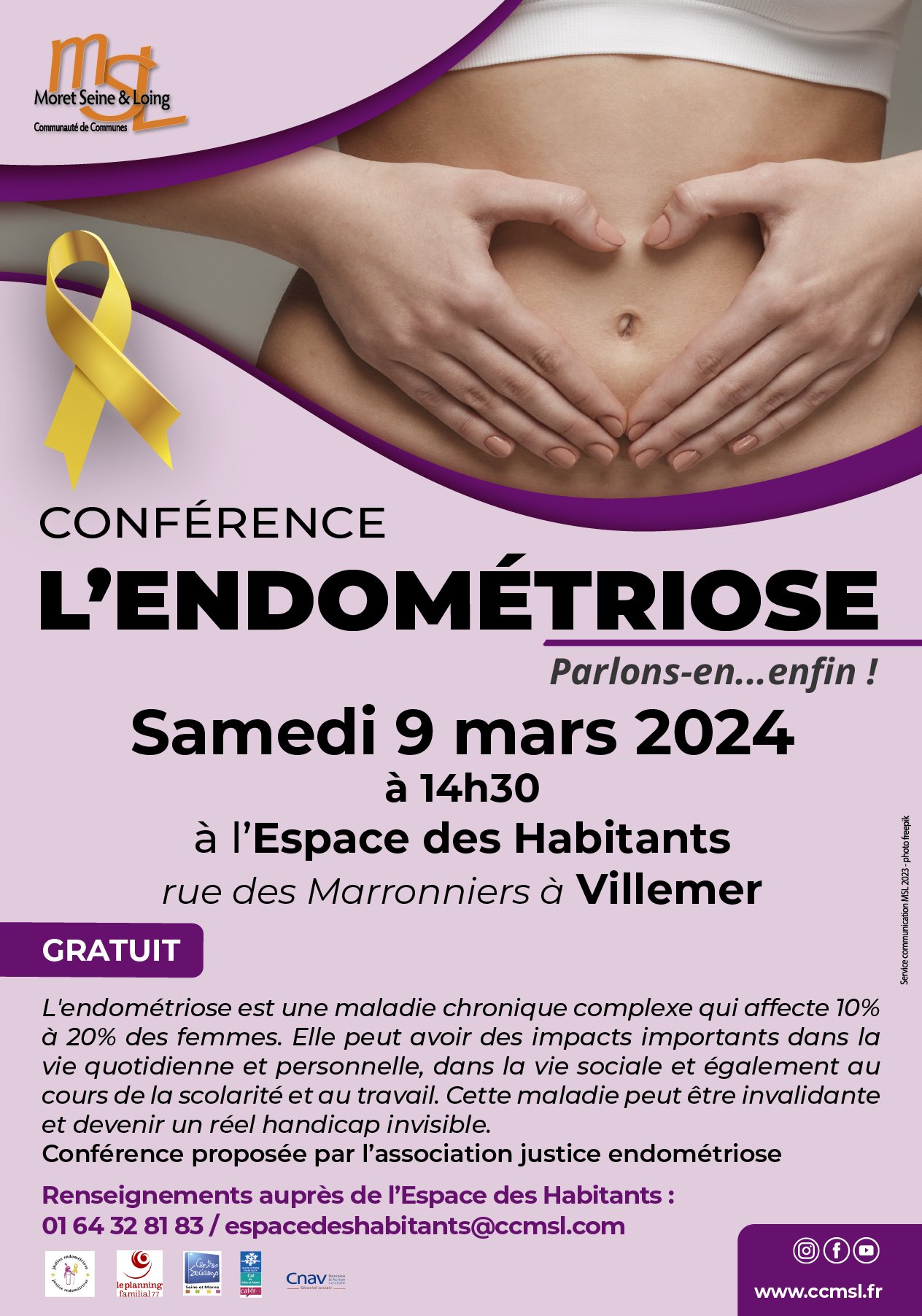 Cette conférence est soutenue par les centres sociaux de Seine et Marne, la CAF et la CNAV (assurance maladie). Nous remercions nos partenaires de nous permettre de proposer cette conférence d'information gratuite sur l'endométriose et les droit des femmes atteintes. Inscriptions auprès de l'espace des habitants de Villemer.