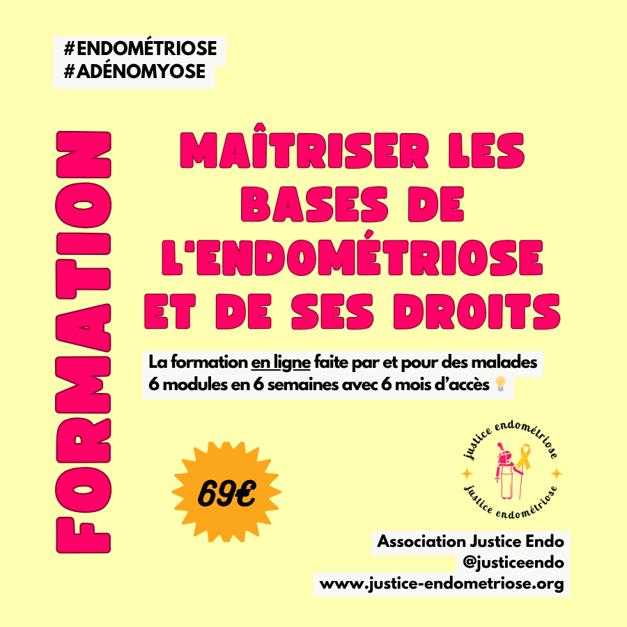 L'association Justice Endo vous propose une formation e-learning claire, accessible et engagée pour mieux comprendre l'endométriose et l'adénomyose, leurs impacts et vos droits en tant que personne concernée.